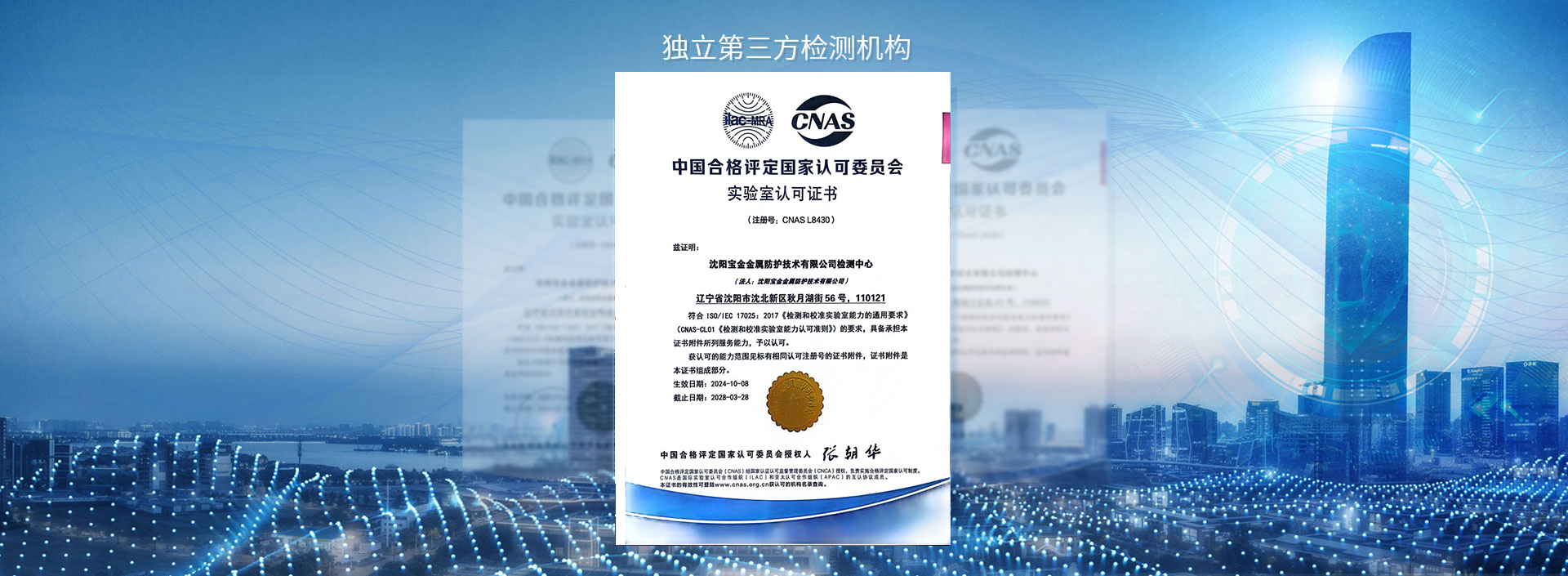 沈陽寶金金屬防護技術(shù)有限公司成立于2011年,于2019年獲批“國家中小企業(yè)公共服務示范平臺“,主要服務于金屬防銹防護領域。依托于專業(yè)技術(shù)服務團隊,積累30余年防銹防護應用技術(shù)數(shù)據(jù)庫和業(yè)內(nèi)尖端儀器設備,可為客戶提供防銹防護技術(shù)咨詢與培訓、方案設計、可行性論證、建立標準、檢驗檢測、委托管理等服務。